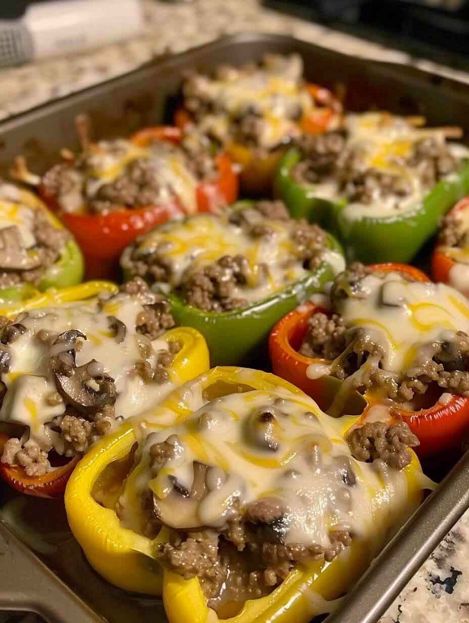 1. Zuerst Backofen auf 180 °C (Ober-/Unterhitze) vorheizen. Paprika oben aufschneiden, entkernen und beiseitelegen.