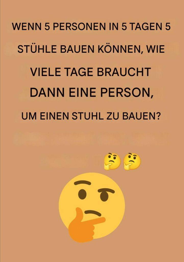 Wenn 5 Personen 5 Stühle in 5 Tagen bauen können, wie viele Tage braucht eine einzelne Person dann, um einen einzigen Stuhl zu bauen?