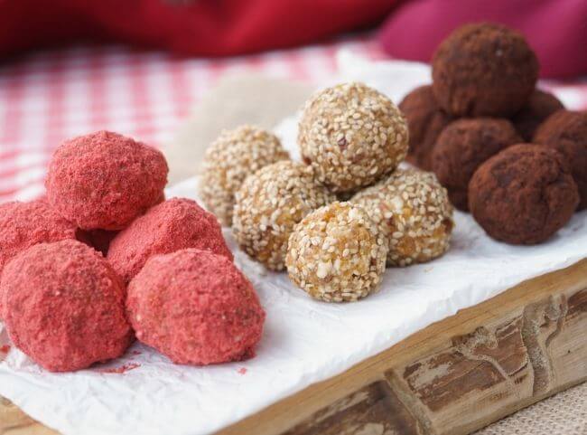 Die kleinen süßen Bällchen sind eine gesunde Nascherei, die viele wertvolle Nährstoffe enthält, dazu vegan ist und ganz ohne künstlichen Zucker auskommt. Also Naschen ohne Reue 🙂