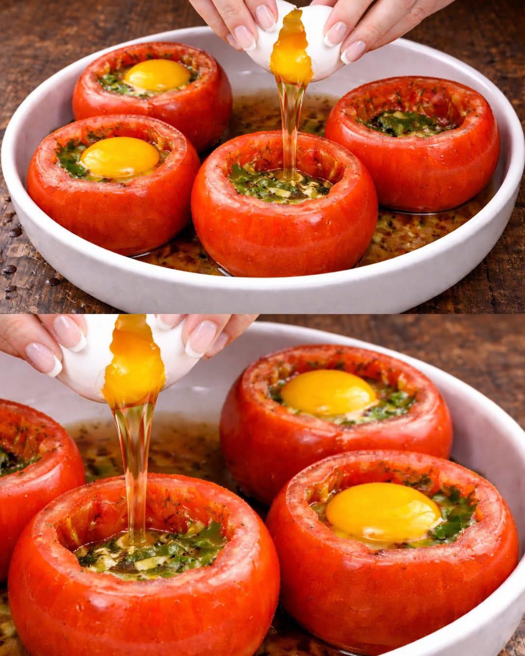 Diese gefüllten Tomaten mit Eiern gehören zu den einfachen Rezepten, die beeindruckend aussehen, aber mit wenigen Zutaten und ohne unnötigen Aufwand zubereitet werden. Sie sind saftig, aromatisch und sehr lecker – perfekt fürs Frühstück, ein leichtes Mittagessen oder ein schnelles Abendessen.