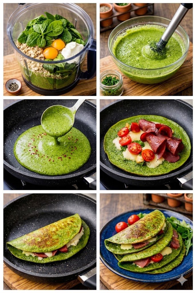 Diese Variante ist für Sie gedacht, wenn Sie Spinatpfannkuchen anstelle des klassischen Pfannkuchenteigs auch andere Zutaten wie Spinat, Eier und Joghurt zur Hand haben. Sie eignet sich ideal für alle, die gerne essen und trinken.